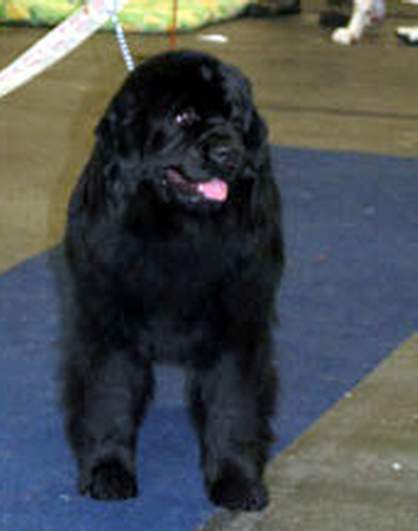 | Posudek: 11 měsíční černá fena, mohutná postava, těžší hlava s volnějšími pysky, pevný hřbet, linie, správně úhleny hrudní i pánevní končetiny, mírná povaha. |
